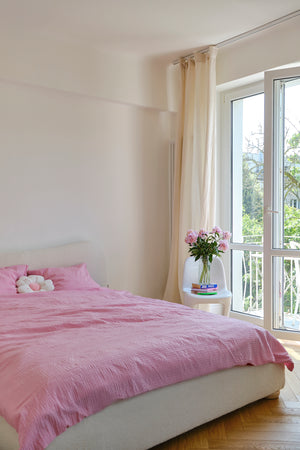 Modern, dense, woven fabric that is exceptionally soft to the touch. It resembles boucle fabric but has a flattened weave, making it very practical for everyday use.Linen
