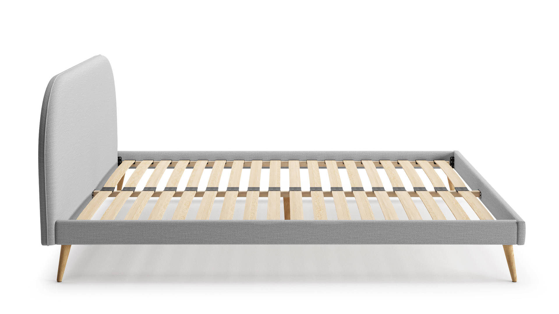 Ma uniwersalny, świeży charakter który idealnie dopasuje się do Twojego wnętrza. Drewniane, skośne nogi nadają lekkości i funkcjonalności. Doskonały wybór, dla tych którzy uwielbiają połączenie prostoty z lekkością. Zaokrąglone wezgłowie, z delikatną lamówką sprawia, że łożko Molly jest jednocześnie przytulne jak i stylowe. W skład produktu wchodzi tapicerowana rama łóżka, stelaż z drabinką, dębowe nogi oraz wszystkie elementy niezbędne do montażu. Uwaga! Łóżko sprzedawane jest bez materaca.