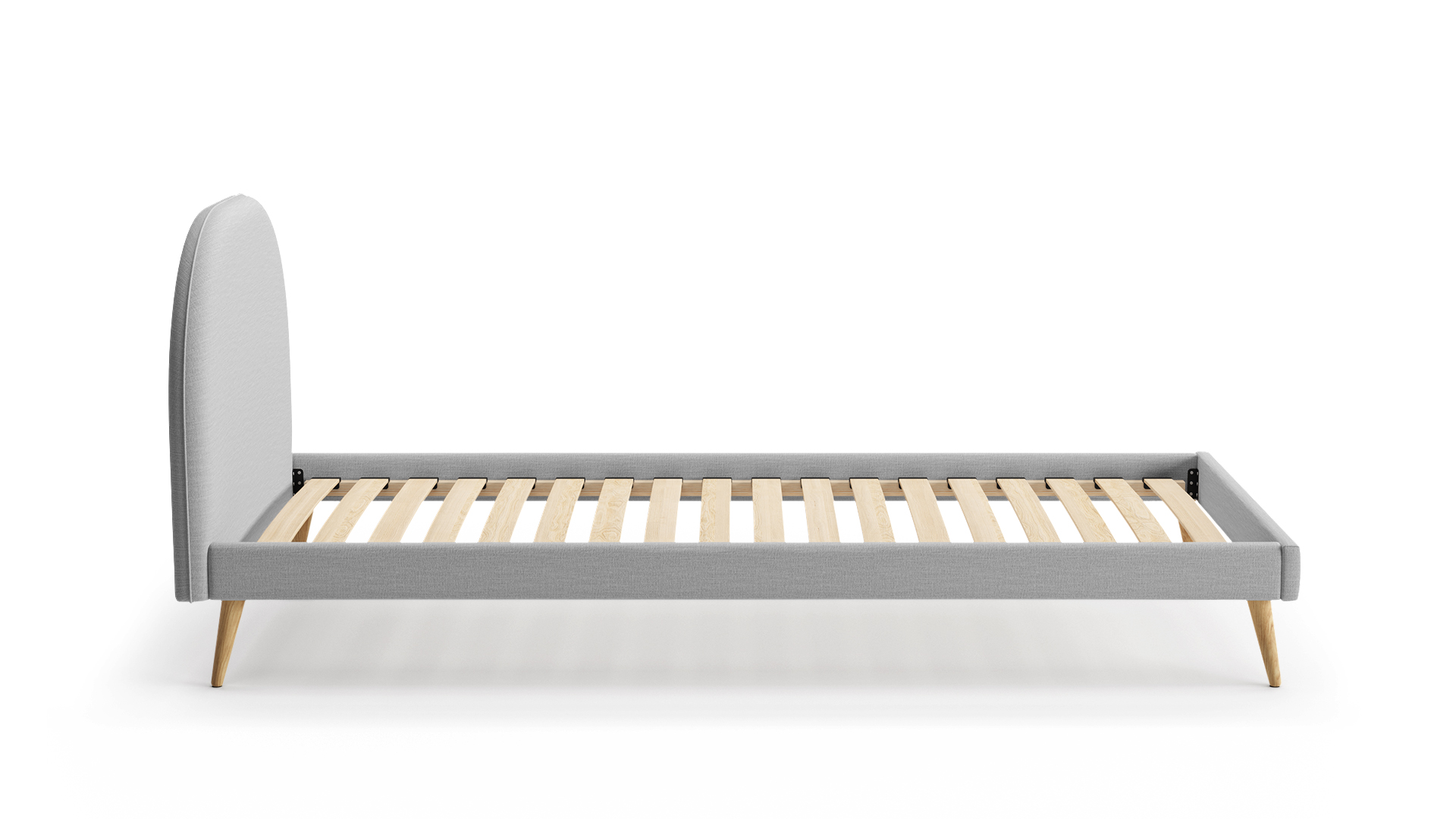 Ma uniwersalny, świeży charakter który idealnie dopasuje się do Twojego wnętrza. Drewniane, skośne nogi nadają lekkości i funkcjonalności. Doskonały wybór, dla tych którzy uwielbiają połączenie prostoty z lekkością. Zaokrąglone wezgłowie, z delikatną lamówką sprawia, że łożko Molly jest jednocześnie przytulne jak i stylowe. W skład produktu wchodzi tapicerowana rama łóżka, stelaż z drabinką, dębowe nogi oraz wszystkie elementy niezbędne do montażu. Uwaga! Łóżko sprzedawane jest bez materaca.