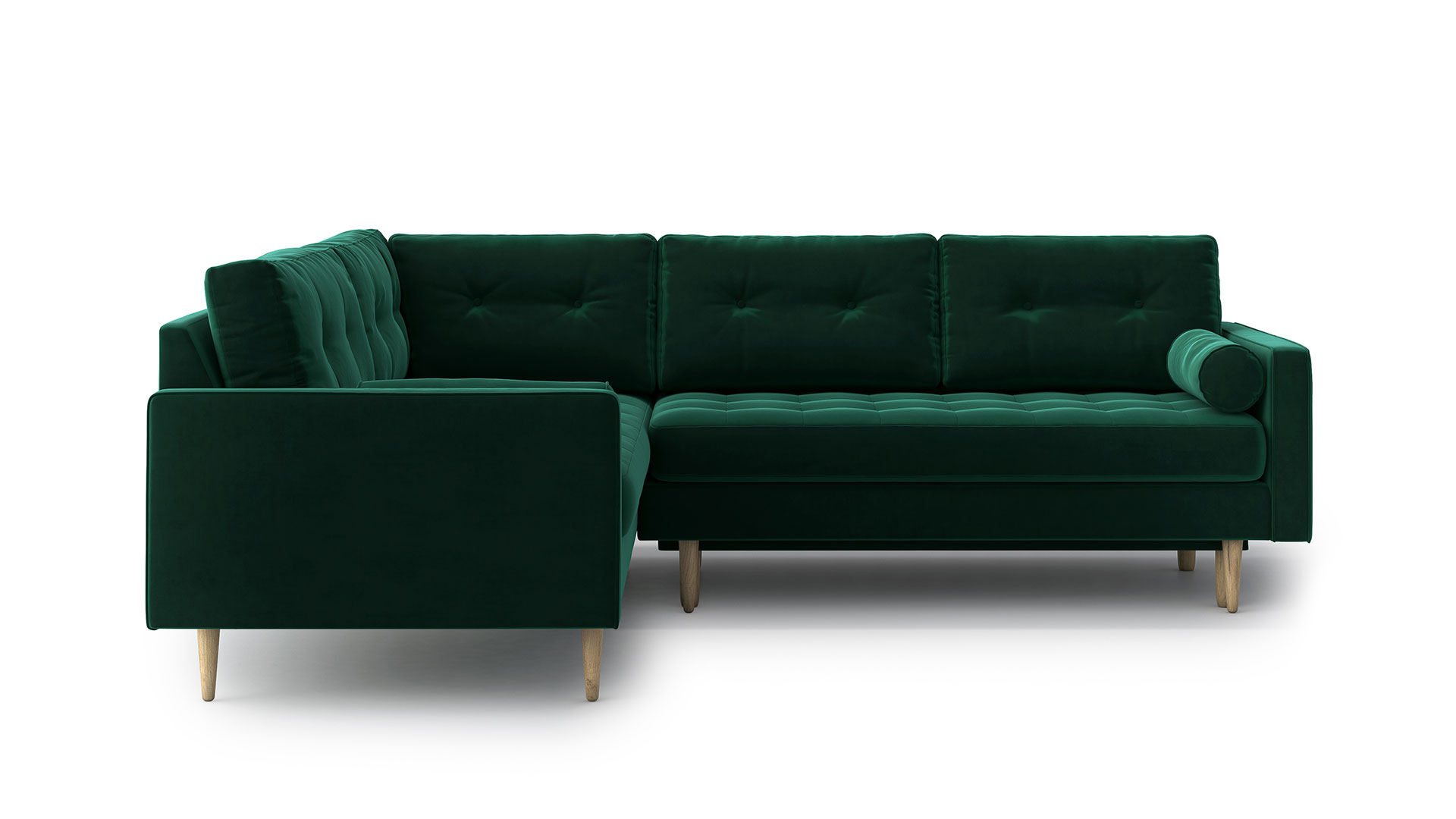 Narożnik Esme z funkcją spania, to idealna opcja dla osób poszukujących połączenia lekkości z maksymalną funkcjonalnością! Dyskretnie ukryta funkcja spania, to as w rękawie przy niezapowiedzianych gościach. Wyraziste dodatki w narożniku Esme z funkcją spania, w postaci ozdobnej lamówki oraz poduszek, sprawiają że narożnik przyciągnie wzrok każdego!